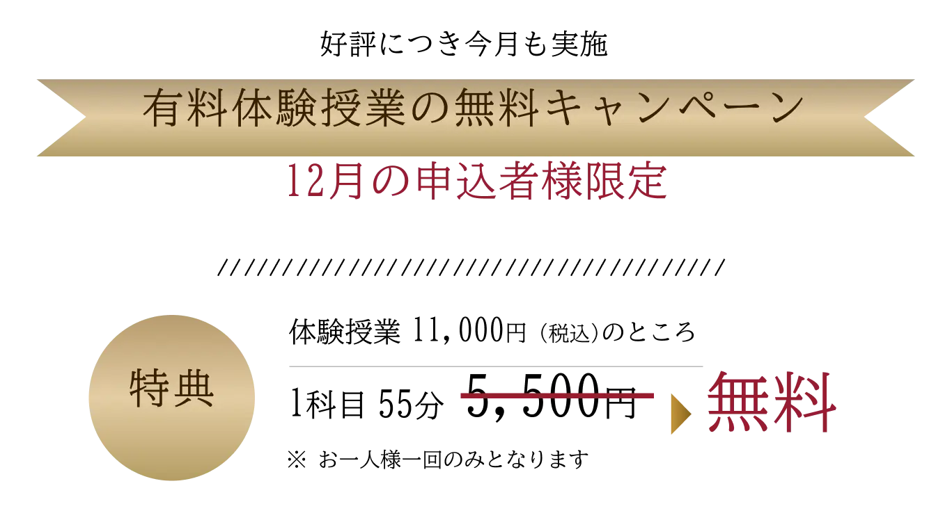 ※初回の授業は12月中旬以降の開始になります。それ以前の開始についてはご相談ください。